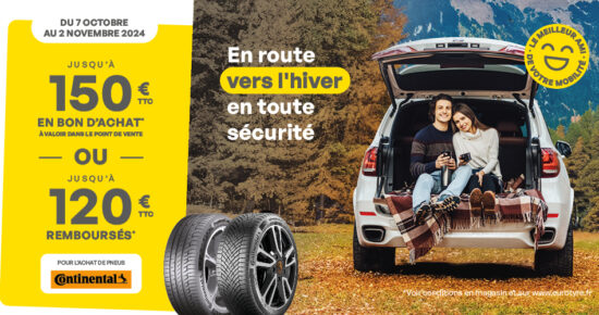 Promotions : Jusqu’à 150€ remboursés* pour l’achat de pneus Continental Du 18 mars au 27 avril 2024, retrouvez toutes nos promotions […]